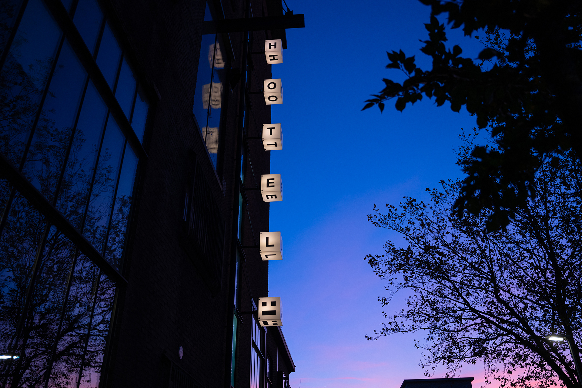 Ons designhotel biedt 13 unieke kamers en een studio, ieder ingericht door Piet Hein Eek. Iedere kamer bevat kunst van een andere kunstenaar en is dus uniek. Het hotel bevindt zich in hetzelfde pand aan de Beeldbuisring, direct naast onze fabriek en restaurants.
