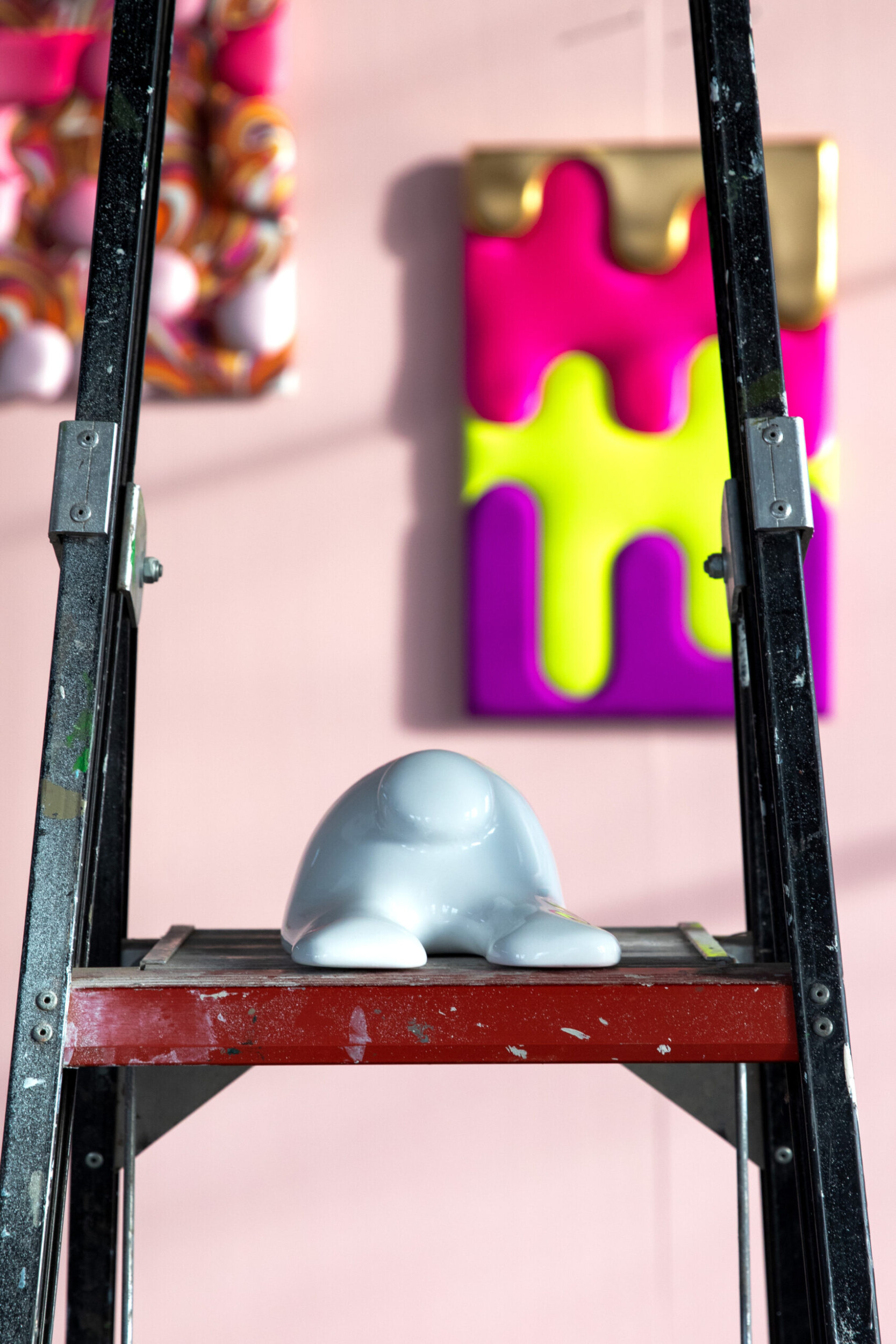Maar we hebben de tijdelijke galerie ook nog om in te vullen. Ik app Tom Claassen met āeen misschien wel irritante vraagā of hij op korte termijn een expo kan realiseren. Ik krijg een reeks afbeeldingen van zijn werk die beschikbaar zijn, plus de mededeling āheel irritantā. Tom kan, en stelt voor om zijn partner Cecile Verwaaijen ook mee te laten doen. Hij heeft nog nooit met haar tentoongesteld. Ze zijn al dagen bezig en doen zo ongeveer waar ze zin in hebben. De beelden raken verdwaald door de showroom en onze spullen die niet passen worden terzijde geschoven!